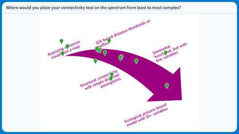 Top tips from attendees to each other included thinking carefully about the question you want to ask, to make clearer whether a planning tool is the right one for you, and consider situations where connectivity is not the only option or could even be detrimental, like in the spread of diseases or invasive species.